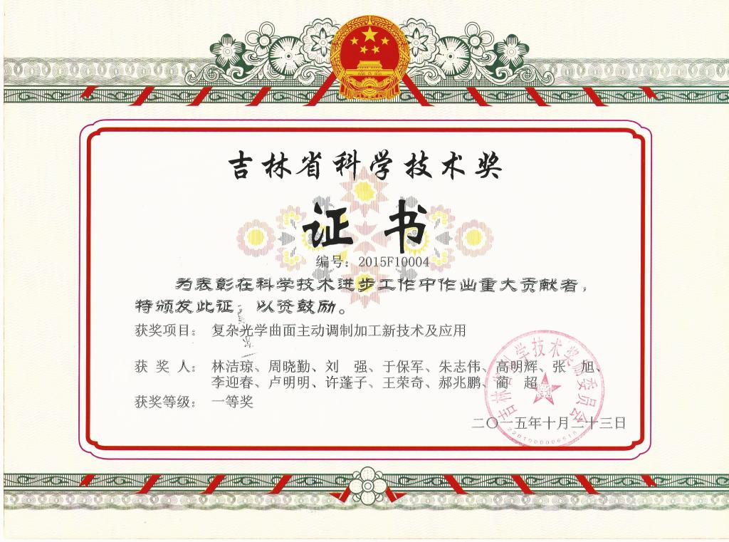 吉林省科学技术一等奖(2015...