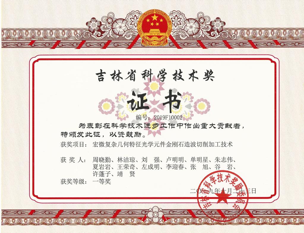 吉林省科学技术一等奖(2019...