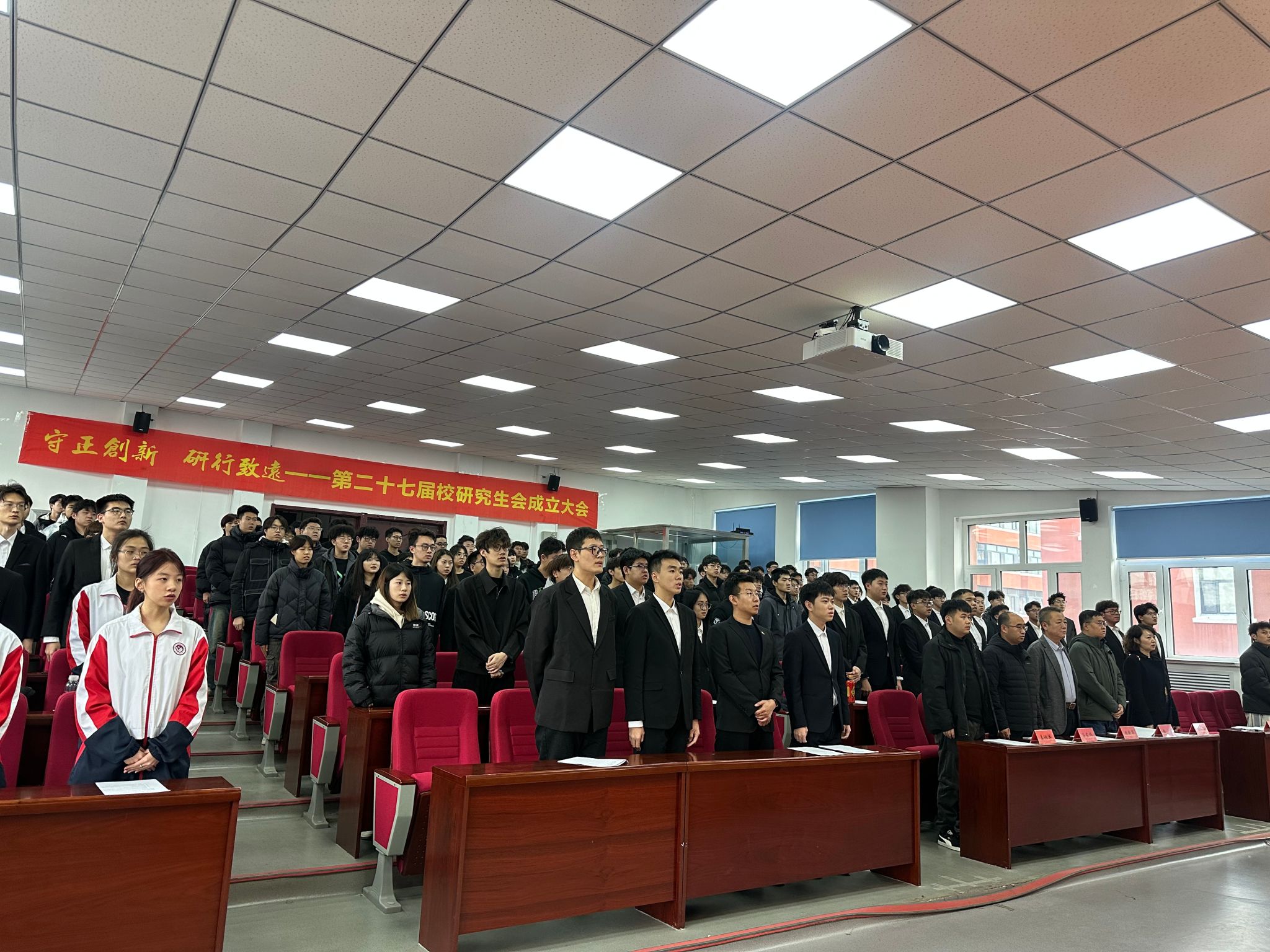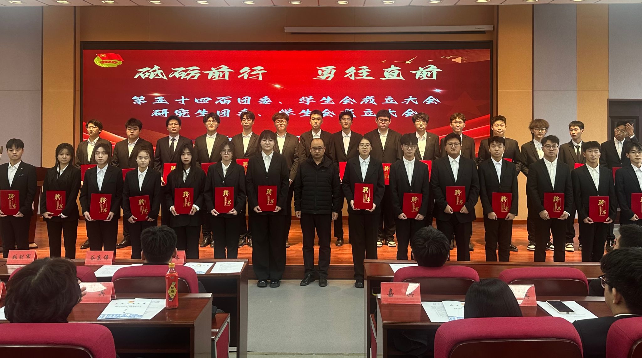 伴随着校歌激扬的旋律,学院第五十四届团委、学生会成立大会暨第八届研究生会成立大会圆满结束。