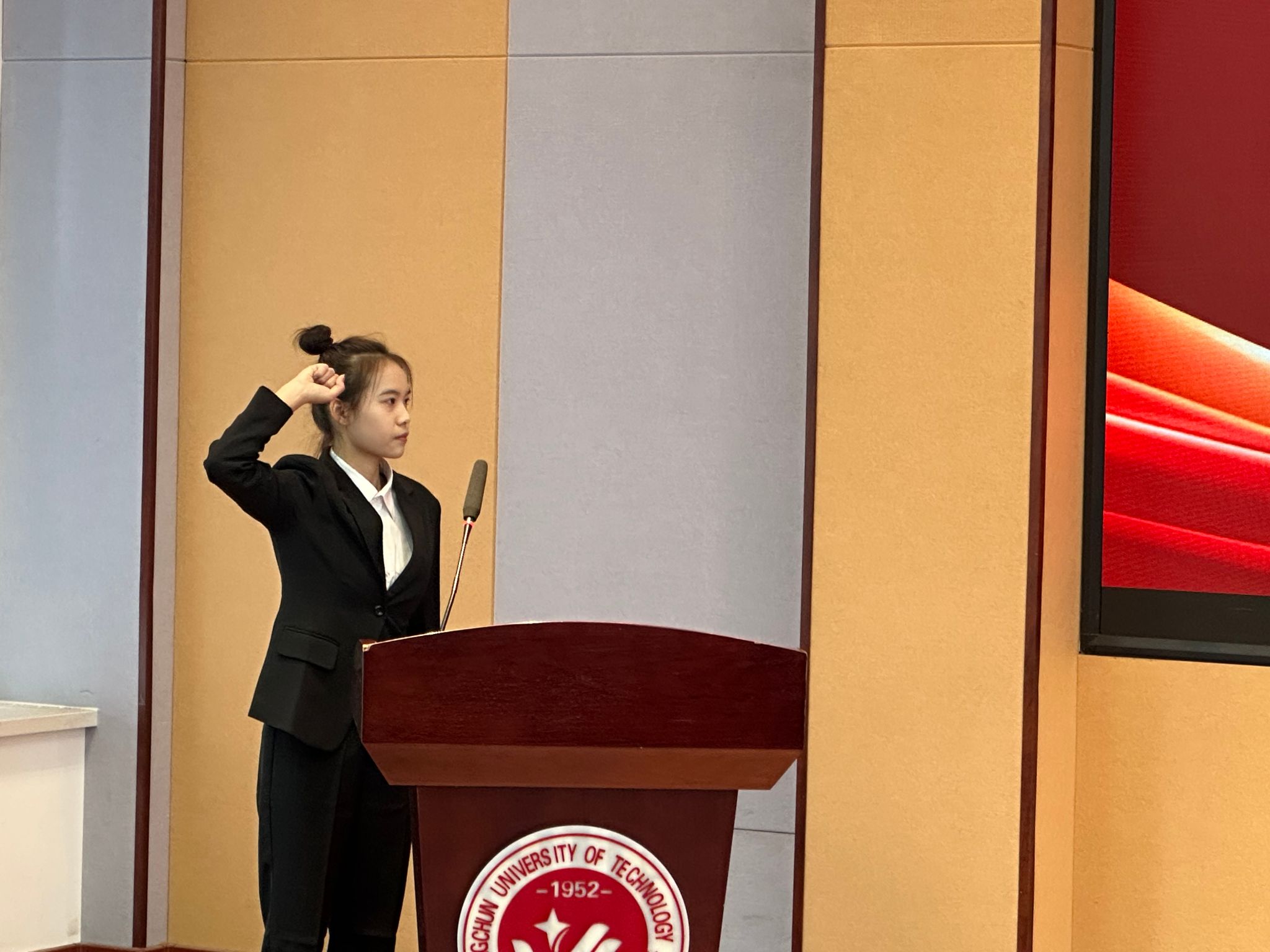 第五十四届学生会主席团成员朱秋悦带领全体学生干部宣誓