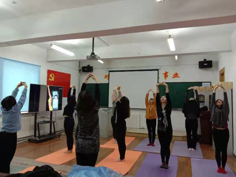 在这个寒冬退去、万物复苏的美好时节,我院十多名女教职工欢聚一堂,换上舒适的运动装,伴着悠扬清雅的音乐,认真地跟随专业视频讲解尽情舒展身体、体验瑜伽运动。有的女教师初次接触瑜伽课程,练习得大汗淋漓,仍然乐此不疲坚持锻炼;有的女教师则显得游刃有余,得到他人称赞。瑜伽体验活动在近一小时的运动与欢声笑语中完满结束,经过一系列动作体验后大家确实感觉缓解了紧张疲惫的身体。