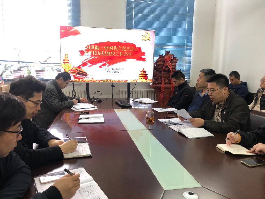 学习会上全体参会人员学习了新修订的《中国共产党普通高等学校基层组织工作条例》(以下简称《条例》),对《条例》中“组织设置、主要职责、党的纪律检查工作、党员队伍建设、干部和人才工作、思想政治工作、对群团组织的领导”等内容进行了重点研读和领会,对新修订的《条例》变化进行了比对学习。全体参学人员体会到新修订的《条例》体现了党的理论创新、实践创新、制度创新的最新成果,是新时代高校党的建设的基本遵循。