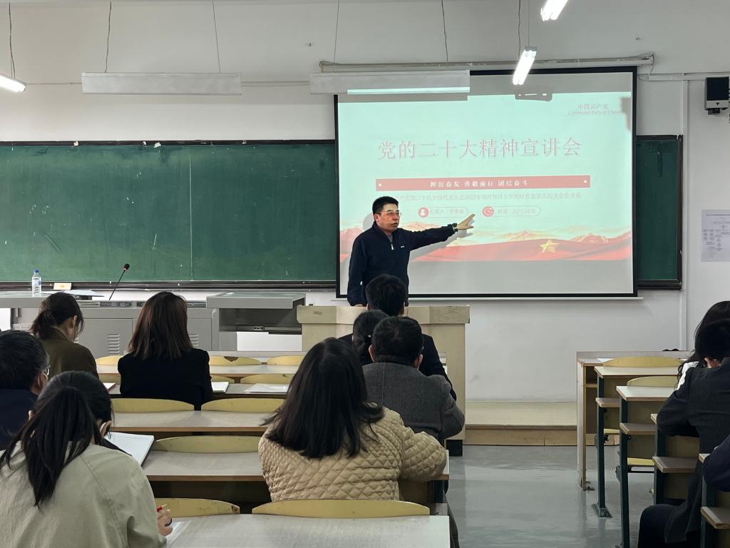 党委召开党的二十大精神宣讲会。学院党委书记李奇涵作为宣讲人与全体教师对党的二十大精神进行了集中学习。