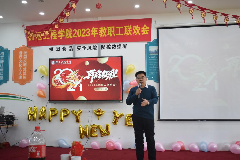 2023年教职工联欢会在南湖校区食堂三楼成功举办。副校长郭世强、工会主席任红莅临了晚会现场,和全院教师欢聚一堂,喜迎新春。