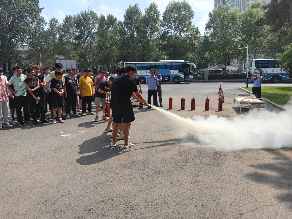 在灭火实战演练区域,由安全处工作人员进行现场讲解,并示范灭火器、灭火毯的使用方法,让参与演练人员快速掌握并实际操作,在演练过程中,师生积极踊跃参加演练活动,分批次进行铁锅灭火和床铺灭火实操演练。