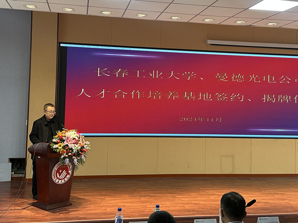 仪式开始时,学院党委书记张利军首先致辞,他对曼德光电公司一行的到来表示诚挚欢迎,并对双方合作的前景表达了美好期望。张利军书记表示,通过校企合作能够促进教育资源与企业需求的有效对接,为学生提供更加广阔的实践平台和就业机会,同时也为企业输送更多高素质、高技能的应用型人才,实现双方共赢的局面。