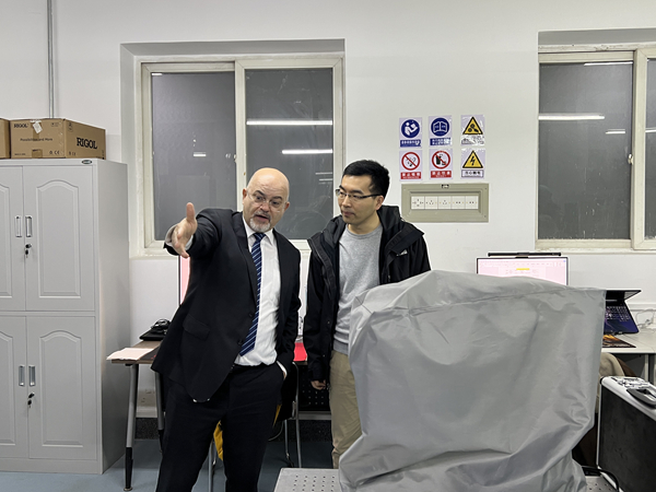 仪式结束后,曼德光电公司一行来到学院实验室进行参观,张霖老师详细介绍了实验室的功能和正在开展的科研项目。