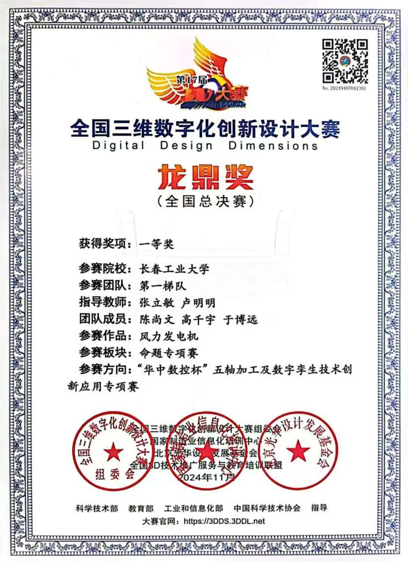 11月16-17日,第17届全国三维数字化创新设计大赛 “华中数控杯” 五轴加工及数字孪生技术创新应用专项赛全国总决赛在大连理工大学成功落下帷幕。由我院教师张立敏、卢明明担任指导教师,学生陈尚文、高千宇、于博远团队参赛团队荣获国家级一等奖。