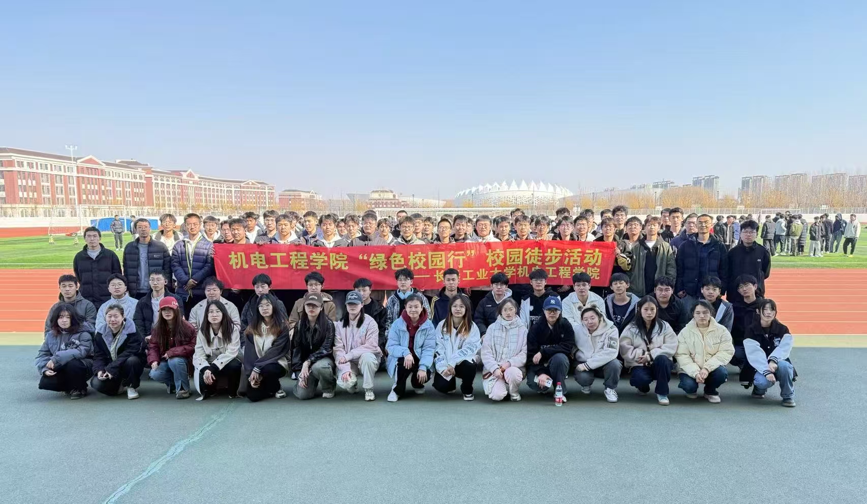 ‘绿色校园行’校园徒步活动”字样格外醒目,记录着这场属于新时代青年的青春盛会。镜头里,灿烂的笑容、昂扬的姿态,更是大家心灵靠近,展现着机电学子的团结与朝气。