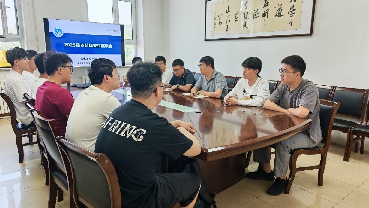 在主楼1387会议室召开2025届毕业生座谈会。会议由党委副书记杨楠、副院长谷东伟和10名毕业生代表共同参与,围绕学生成长、学院发展及未来规划展开深入交流。