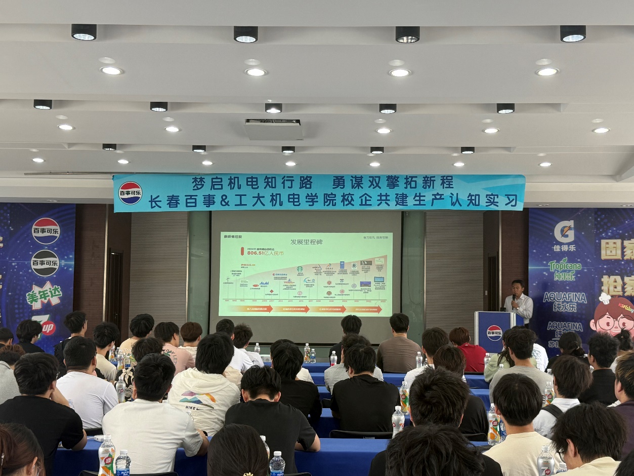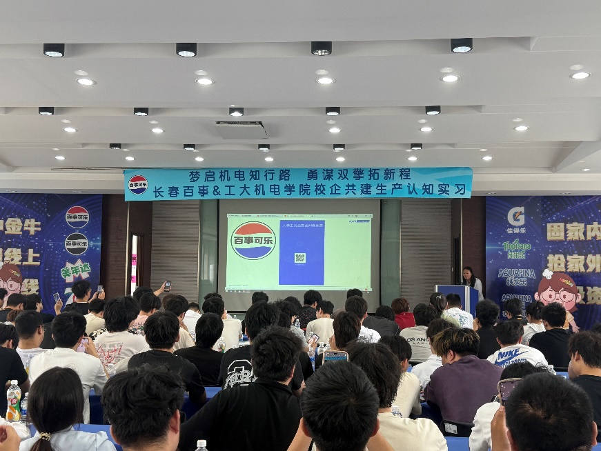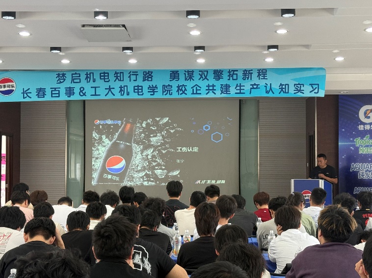 本网讯(通讯员 宋盾兰 龙哲 李爽)6月11日,由工业工程系主任宋盾兰、副主任龙哲及李爽带领工业工程专业2024级同学走进长春百事可乐饮料有限公司,开启了一场沉浸式认识实习之旅。此次活动将课堂搬进现代化工厂,让专业知识与行业实践深度碰撞。在企业技术人员的全程引导下,同学们深入生产一线,参观了自动化饮料生产车间。从PET瓶坯的注塑成型,到高速灌装流水线精准注入饮品,再到智能包装系统完成产品封装,同学们见证了一瓶百事可乐从原料到成品的完整生产流程。
