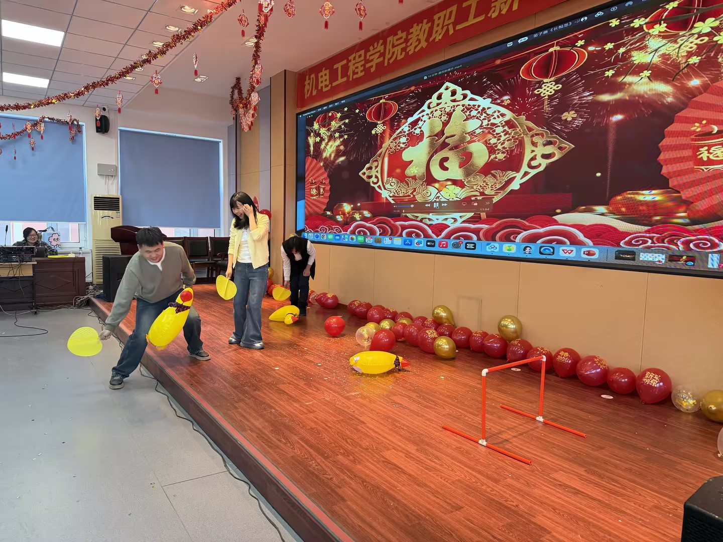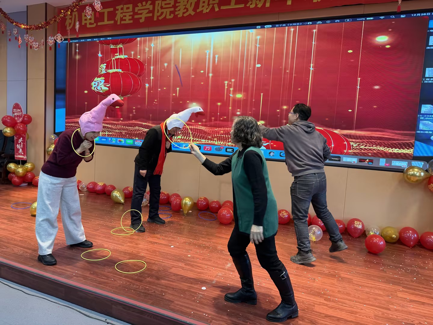 晚会还穿插了多个趣味互动游戏。教师们积极参与,配合默契,现场妙趣横生,台上台下笑语连连,洋溢着欢乐祥和的节日氛围。