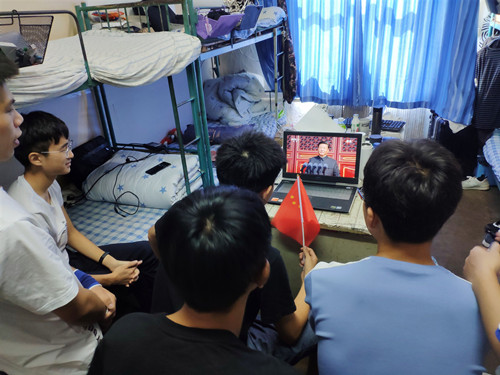 青年学子观看国庆阅兵式直播活动