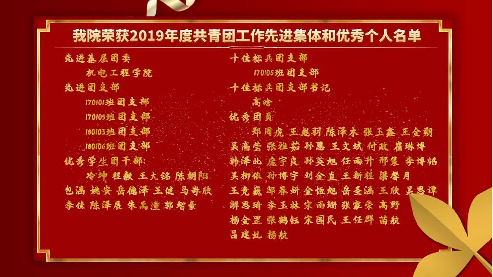 在工作中,涌现出了一大批团结进取、勇于创新、成绩突出的先进集体和扎实工作、勤学向上、拼搏奉献的优秀个人。在我校2019年度共青团工作评选中:
