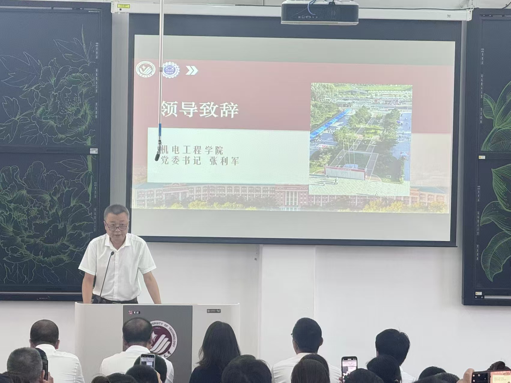本网讯(通讯员 姜鸿乔)为推进家校共建,形成合力育人。9月7日,学院在南湖校区综合楼第一阶梯教室召开2025级新生家长见面会。学院党委书记张利军、院长郝兆朋、副院长谷东伟、卢明明,团委书记张龙娇、机械工程系主任高嵩、副主任尹晓静、副主任李莉佳,工业设计系主任李明、工业工程系主任宋盾兰、副主任龙哲,机械电子工程系主任张炜,车辆工程系主任杨士通,智能制造系主任谷岩、新生辅导员姜鸿乔及300余名新生家长齐聚现场,共同规划新生未来发展路径,构建家校协同育人模式。见面会由学院党委副书记杨楠主持。